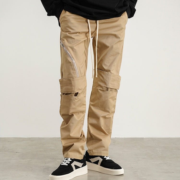 Embrace effortless style and all-day comfort with our Straight Loose Overalls. Crafted from breathable plain weave cotton, these trousers keep you cool and comfortable from morning to night. The relaxed, straight-leg silhouette offers unparalleled freedom of movement, perfect for anything from casual outings to creative workdays. An adjustable drawstring waist at the low-rise hip ensures your perfect, personalized fit. In versatile Khaki Black, they pair seamlessly with everything in your wardrobe, creating a modern, laid-back look that feels as good as it looks. Your new favorite pair of pants, redefining easygoing elegance.